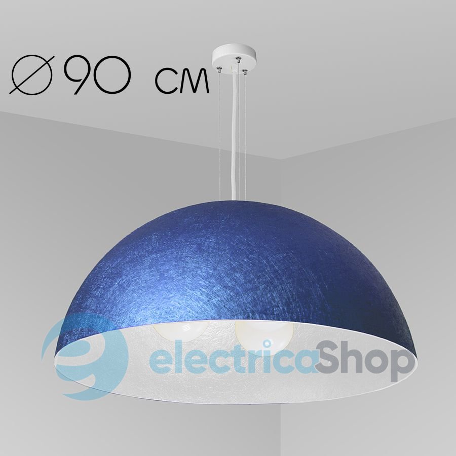 Підвісний світильник ImperiumLight 07390.58.01 D.90 см, синій (металік) / білий дуже добре буде виглядати в кафе, барах, ресторанах, в офісних приміщеннях, а також підкреслить індивідуальність вашого будинку. Лаконічний дизайн і модний колір дає можливість використовувати світильник в сучасних інтер'єрах. Діаметр підвісу - 90 см, висота плафону - 45 см, довжина світильника - 170 см.