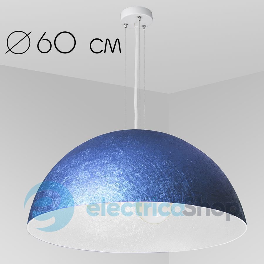 Підвісний світильник ImperiumLight 07360.58.01 D.60 см, синій (металік) / білий дуже добре буде виглядати в кафе, барах, ресторанах, в офісних приміщеннях, а також підкреслить індивідуальність вашого будинку. Лаконічний дизайн і модний колір дає можливість використовувати світильник в сучасних інтер'єрах Діаметр підвісу - 60 см, висота плафону - 30 см, довжина світильника - 155 см.