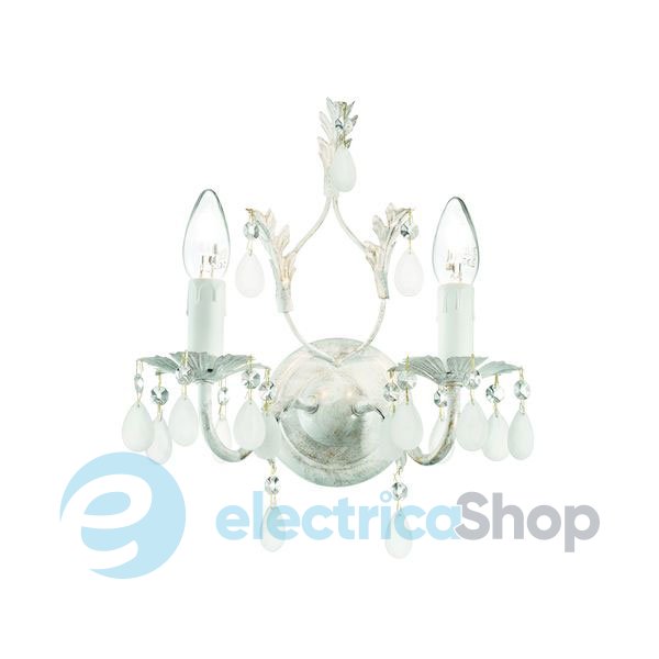 Світильник Ideal Lux 100296 CASCINA стане окрасою приміщення, оформленого в класичному стилі. Підвіски виготовлені з окисленого прозорого скла. Арматура та декоративні елементи виготовлені у вигляді листка з модельованого вручну метала. Світильник вручну пофарбований бело-золотистою фарбою.