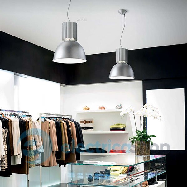 Люстра Ideal Lux 100340 HANGAR буде добре виглядати в приміщенні, оформленому в сучасному стилі. Арматура та розсіювач виготовлені з анодованого алюмінія, а внутрішня частина пофарбована в білий колір. Підвіс оснащений електричним проводом, довжина якого регулюється.