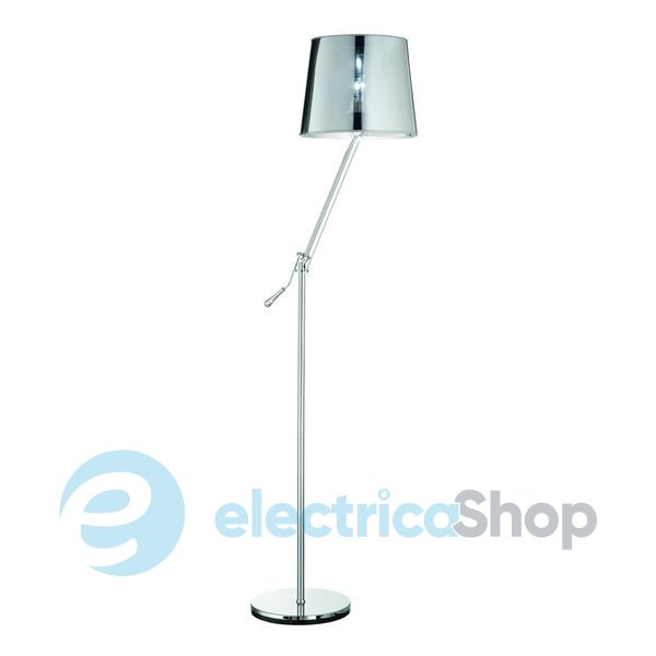 Торшер Ideal Lux 19796 REGOL виготовлений з металу, колір - хром. Плафон з ПВХ кольору хрома. Освітлювальний прилад буде гарно виглядати в інтер'єрі, оформленому в сучасному стилі. Арматура торшера вращаемая.