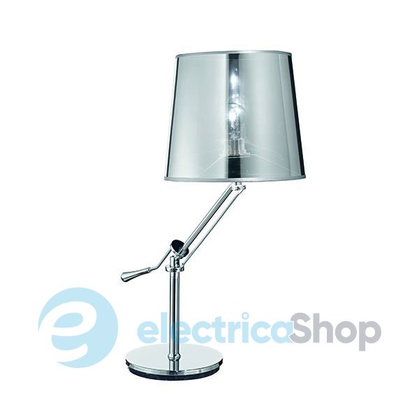 Настільна лампа Ideal Lux 19772 REGOL Виготовлена з металу, колір - хром. Плафон з ПВХ кольору хрома. Освітлювальний прилад буде гарно виглядати в інтер'єрі, оформленому в сучасному стилі. Арматура настільної лампи вращаемая.