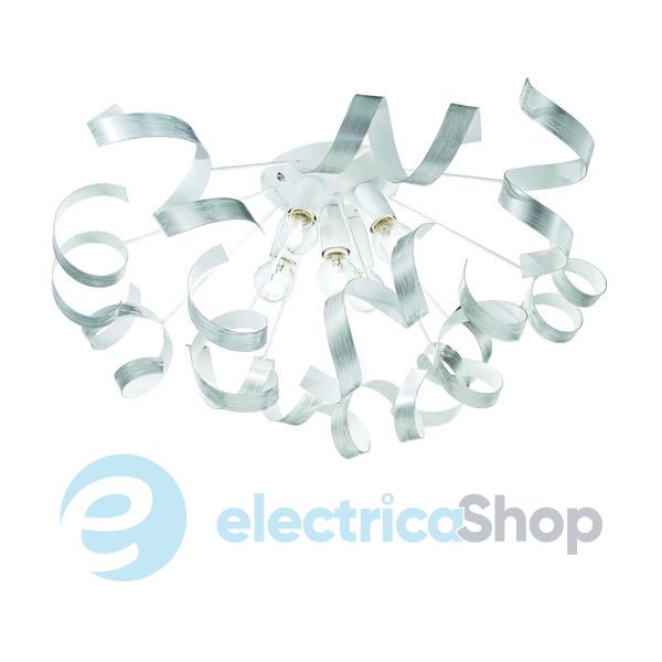 Люстра Ideal Lux 101590 VORTEX підійде для приміщення, оформленого в сучасному стилі. Арматура виготовлена з металу і пофарбована в матовий білий колір, декоративні елементи прикрашені сріблястою фольгою і модельовані вручну.