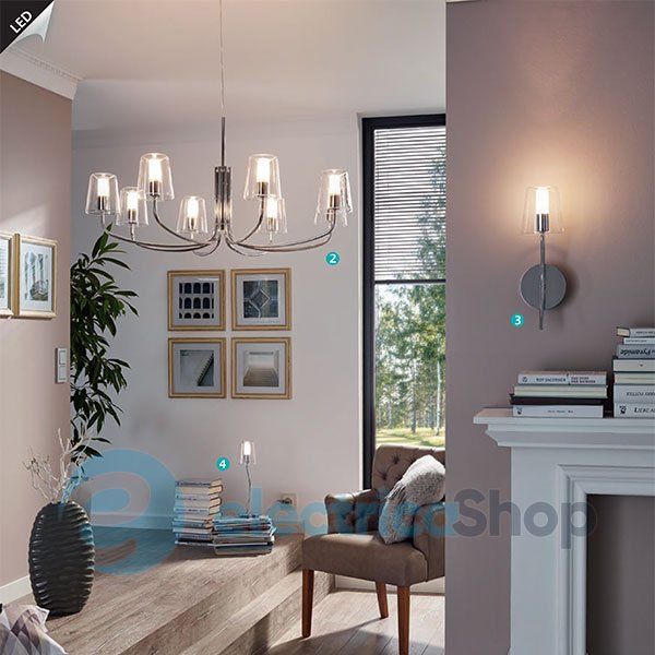 Люстра 94623 Eglo NOVENTA з авангардної колекції Егло підійде для приміщення, оформленого в стилі "модерн". Плафони виготовлені зі скла, арматура - із сталі. LED-лампочка в комплекті.