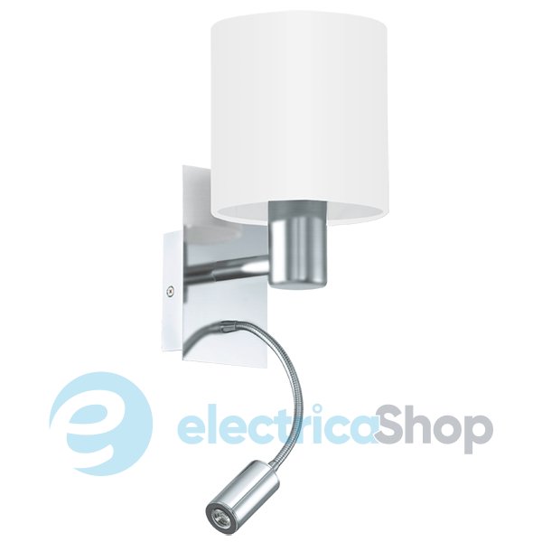Бра 94929 Eglo PASTERI буде мати гарний вигляд у приміщеннях, оформлених в сучасному стилі. Арматура освітлювального приладу виготовлена з металу, плафон - з тканини.