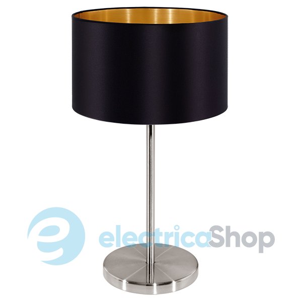 Настільна лампа 31627 Eglo MASERLO буде мати гарний вигляд у приміщеннях, оформлених в сучасному стилі. Арматура освітлювального приладу виготовлена з металу, плафон - з тканини (чорного кольору зовні та золотистого всередині).
