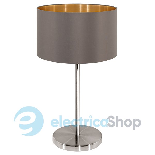 Настільна лампа 31631 Eglo MASERLO із стильної текстильної колекції Егло буде мати гарний вигляд у приміщеннях, оформлених в сучасному стилі. Арматура освітлювального приладу виготовлена з металу, плафон - з тканини (колір "капучино" зовні и золотистий всередині).
