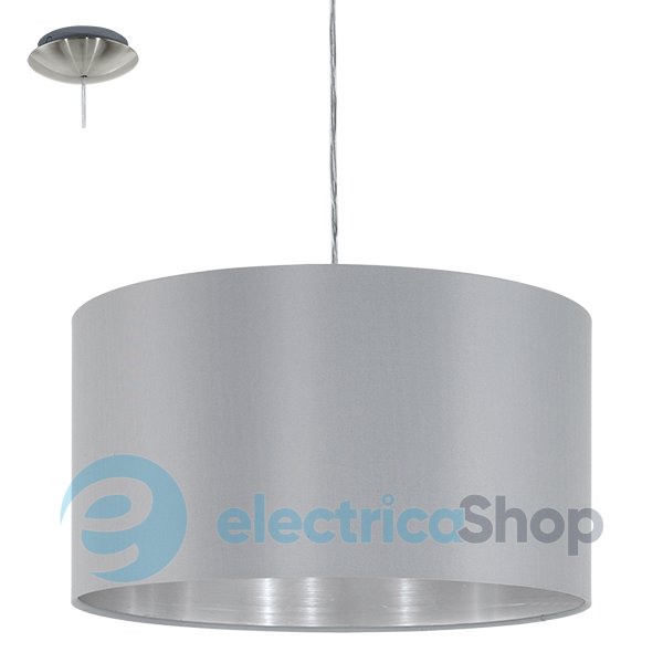 Люстра 31601 Eglo MASERLO із стильної текстильної колекції Егло буде мати гарний вигляд у приміщеннях, оформлених в сучасному стилі. Арматура освітлювального приладу виготовлена з металу, плафон - з тканини.