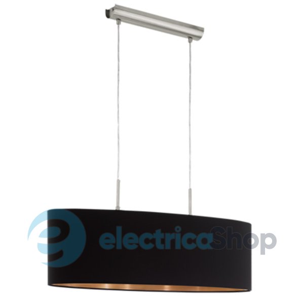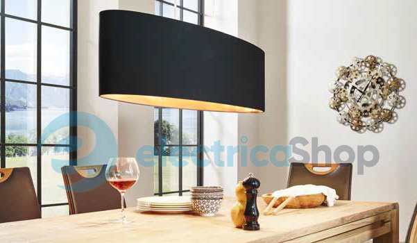 Люстра 94915 Eglo PASTERI буде мати гарний вигляд у приміщеннях, оформлених в сучасному стилі. Арматура освітлювального приладу виготовлена з металу, плафон - з тканини (чорного кольору зовні та мідного всередині).