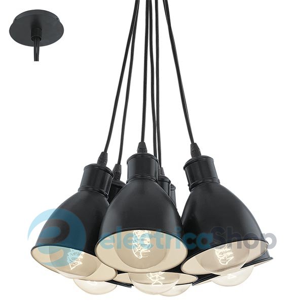 Люстра 49467 Eglo PRIDDY з трендової колекції Егло буде гарно виглядати в сучасних інтер'єрах. Такий освітлювальний прилад можна використовувати при оформленні приміщення в стилі "вінтаж", "лофт". Арматура та плафони підвісу виготовлені із сталі.