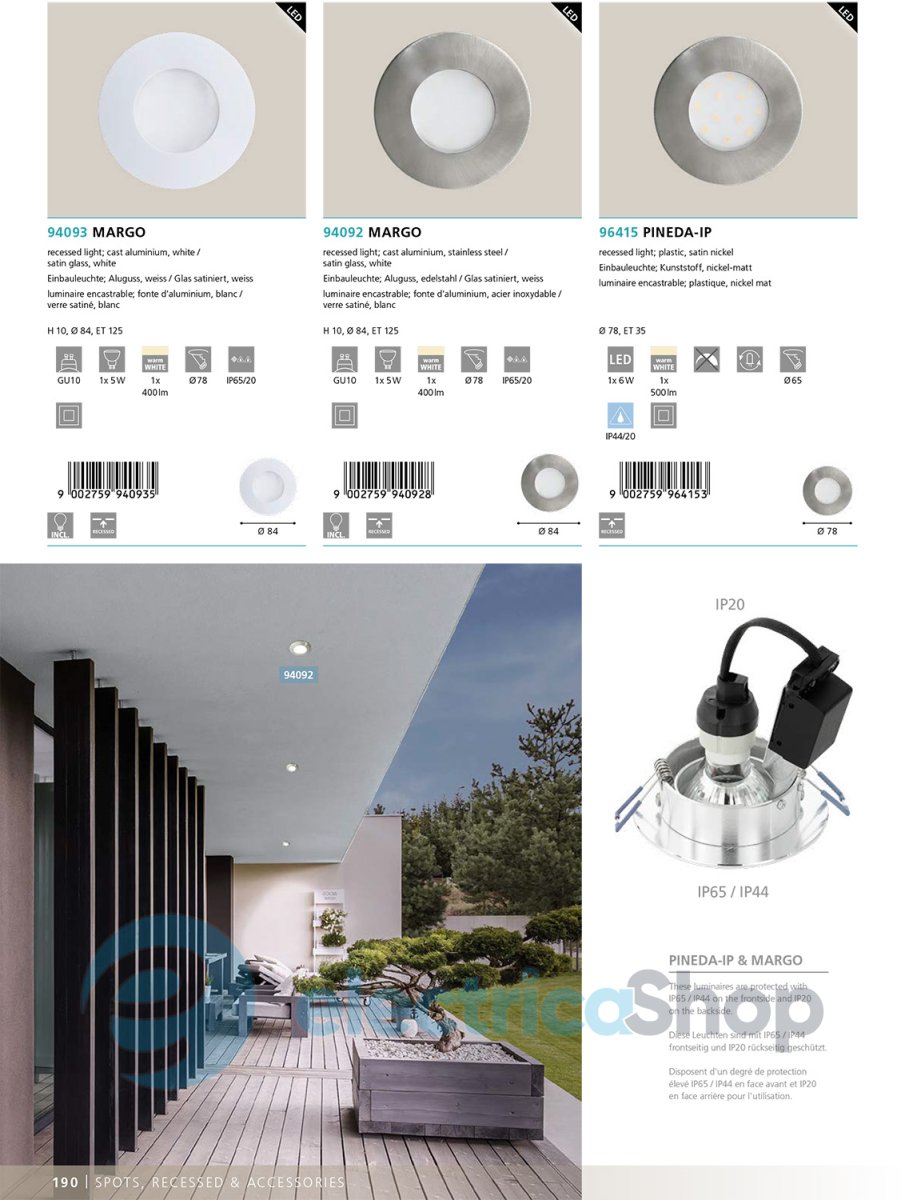 Вбудований вуличний світильник EGLO 94093 MARGO виготовлений з алюмінію та скла.
