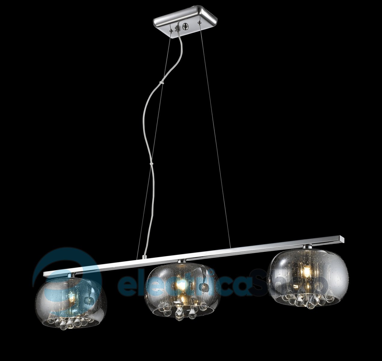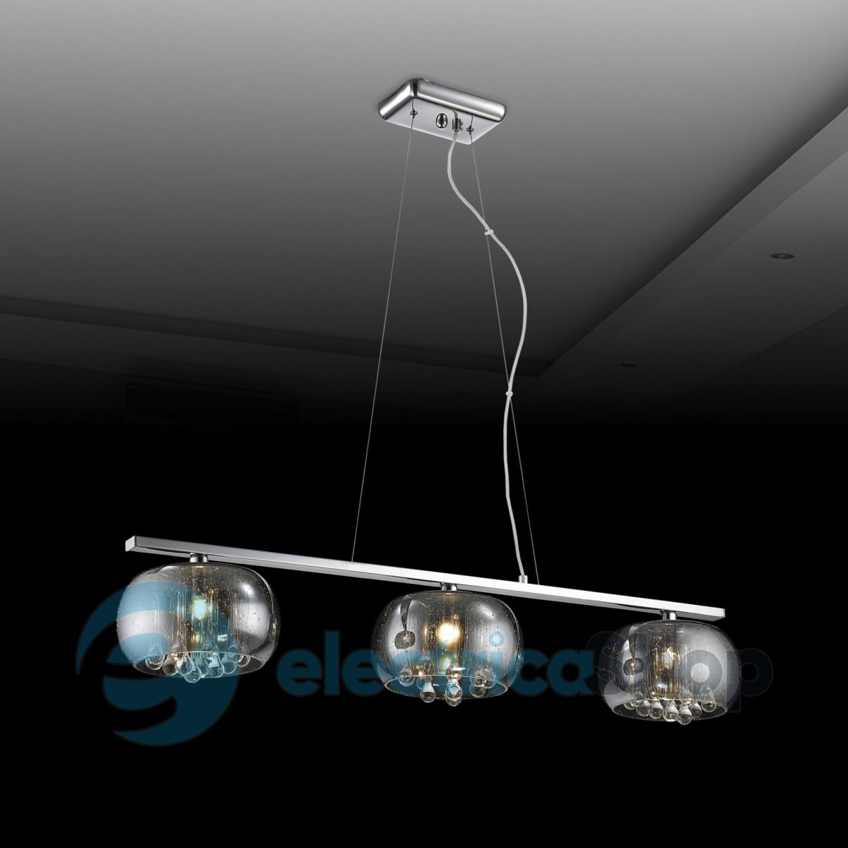 Люстра P0076-03S-F4K9 Zuma CRYSTAL гарно виглядатиме у вітальні чи спальні. Основа виготовлена з металу, колір - хром. Плафон з димчастого скла. Підвіски кришталеві.