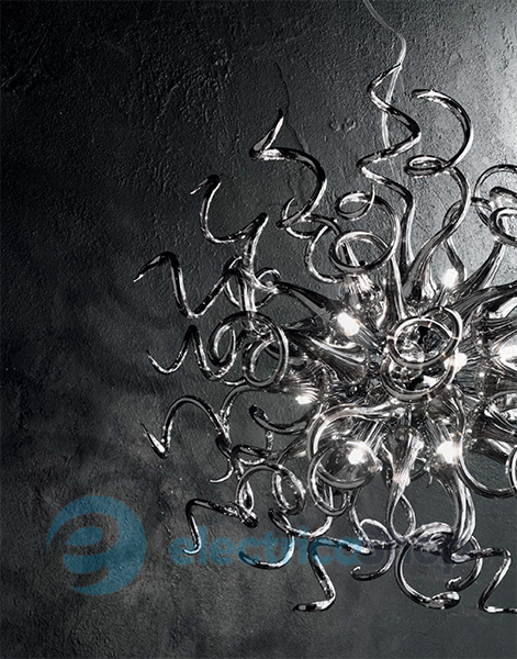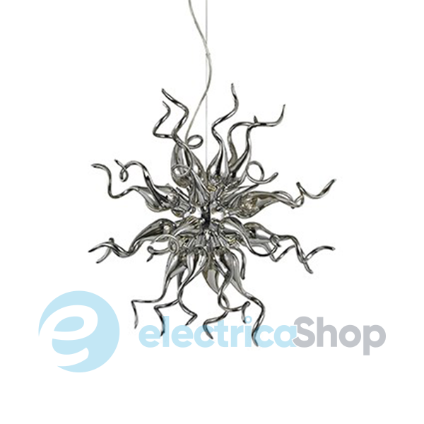 Люстра Ideal Lux 112176 LORY Fume гарно виглядатиме в інтер'єрах в стилі модерн. Декоративні частини виготовлені з дутого димчастого скла ручної роботи, арматура - з хромованого металу.