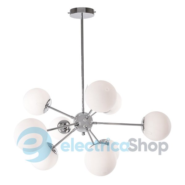 Люстра Blitz Leuchten 5166-49 буде гарно виглядати в приміщеннях, оформлених в сучасному стилі, стилі "модерн". Арматура виготовлена з металу, плафони - зі скла.