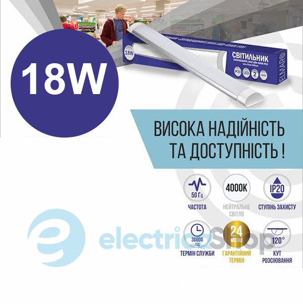 Світлодіодний світильник Elmar LWLW 36 Вт 4000K IP20 1200 мм (LWLW.36.4000.WH.IP20)
