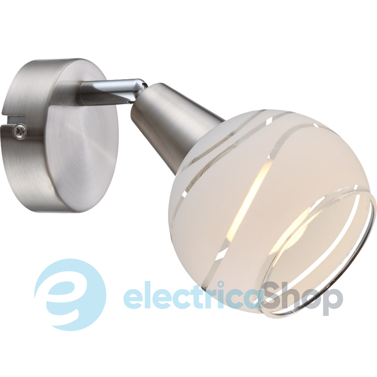 Світильник торгової марки Globo - 54341-1O з серії ELLIOTT має металеву основу кольору «нікель матовий». Колір плафону світильника: скло біле з малюнком сатинові смужки. Всі світильники Globo відповідають європейській якості.