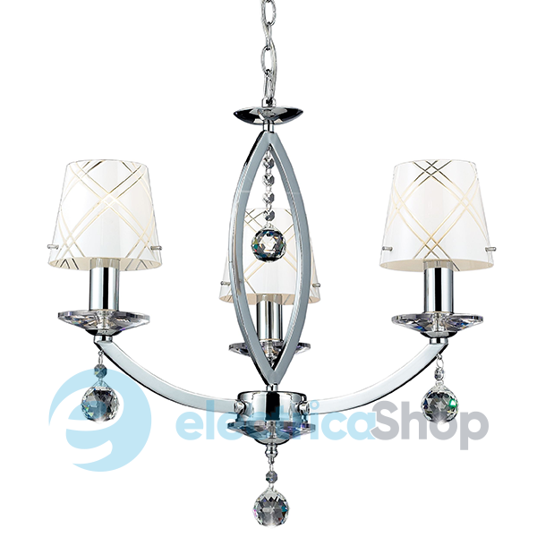 Люстра Wunderlicht W7005-3P буде гарно виглядати в приміщеннях, оформлених в сучасному стилі, стилі "модерн". Арматура виготовлена з металу, плафони - зі скла, підвіски - з кришталю.