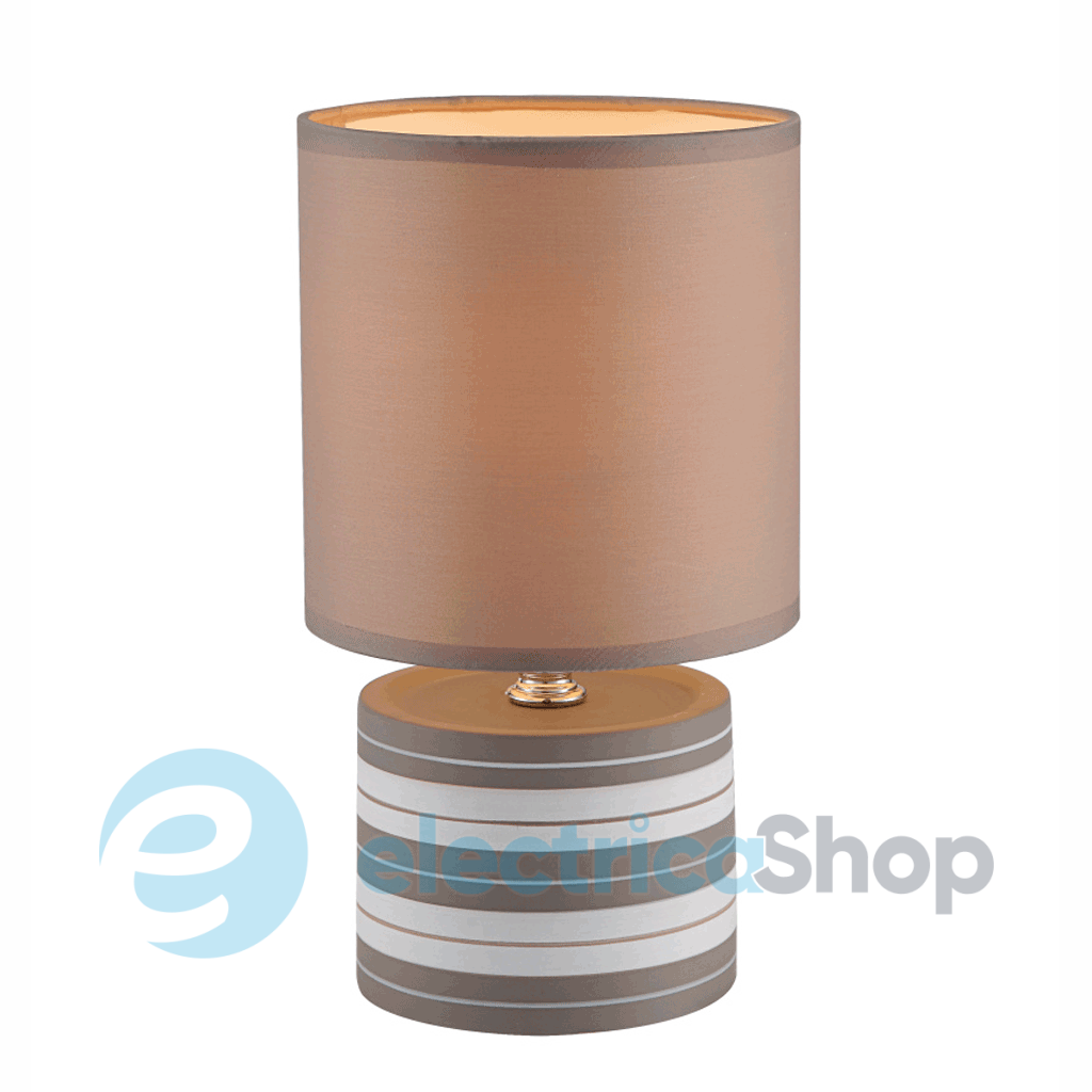 Настільна лампа 21663 торгової марки Globo™ з колекції LAURIE з керамічною теракотовою основою зі смугами і плафоном з тканини теракотового кольору.
