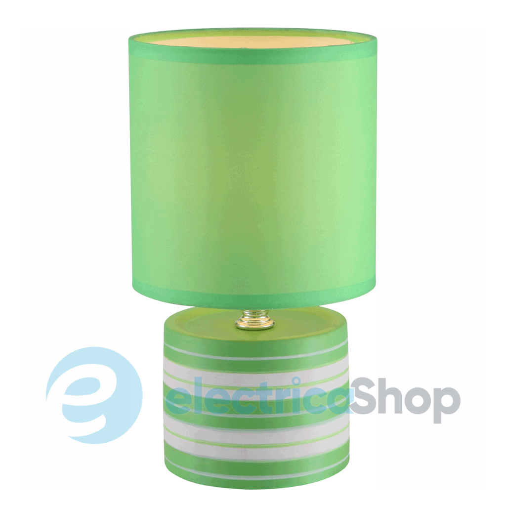 Настільна лампа 21662 торгової марки Globo™ з колекції LAURIE з зеленою основою з кераміки і плафоном з тканини зеленого кольору.