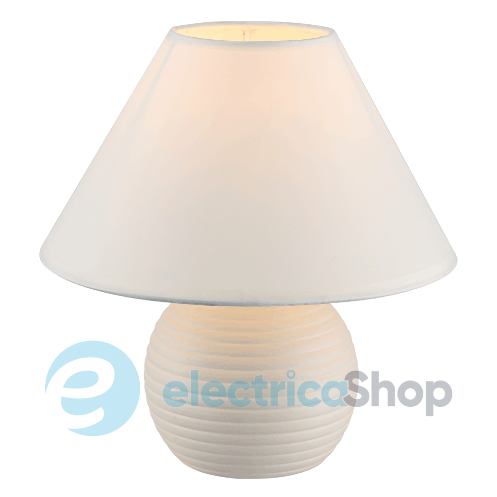 Настільна лампа 21681 торгової марки Globo™ з колекції TEMPLE з білою керамічною основою і плафоном з тканини білого кольору.