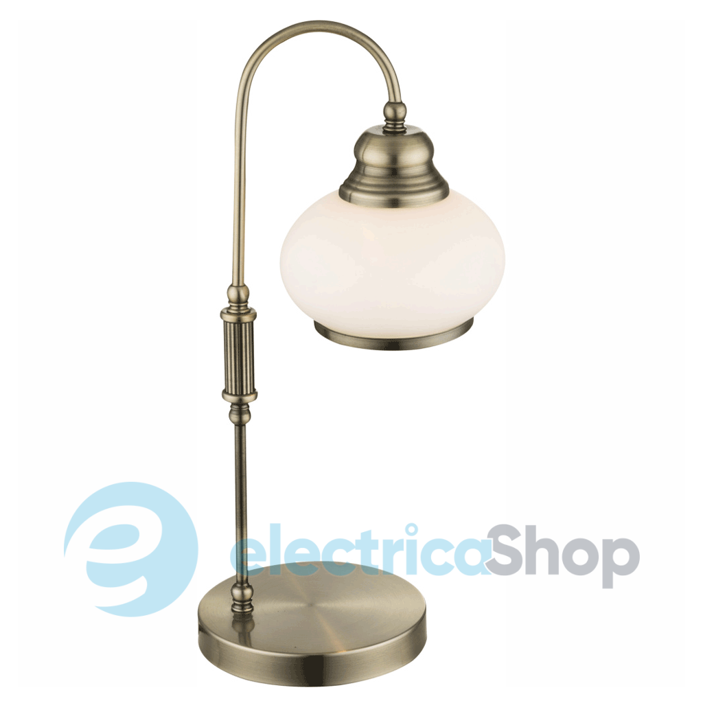 Настільна лампа 6900-1T торгової марки Globo™ з колекції NOSTALGIKA з латунною металевою основою кольору латунь і плафоном білого кольору. Всі настільні лампи Globo виготовлені з дотриманням всіх екологічних норм, відповідають європейським параметрам безпеки.