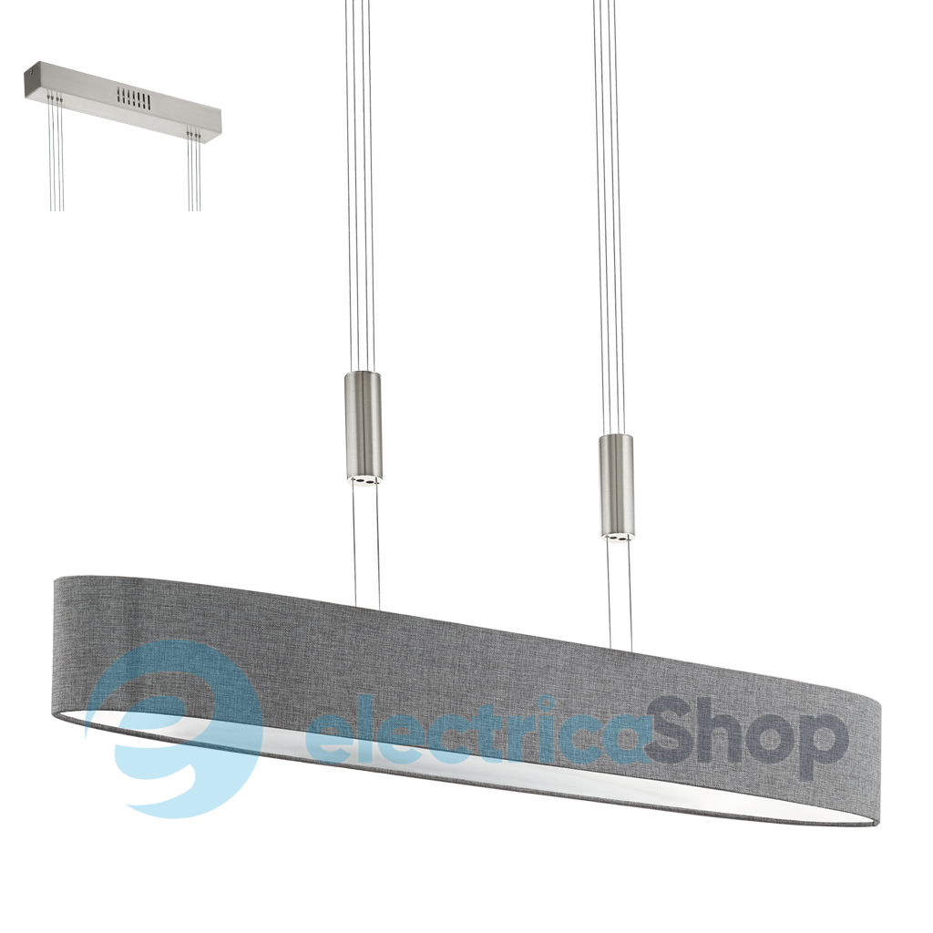 Авангардний підвіс 95351 EGLO з серії – «ROMAO». Основа виготовлена зі сталі кольору нікель матовий, хром, а плафон - з тканини та полотна. Освітлювальний прилад можна регулювати по висоті. Підвіс ROMAO 1 – це інтер'єрна лампа з колекції підвісних світильників Eglo.