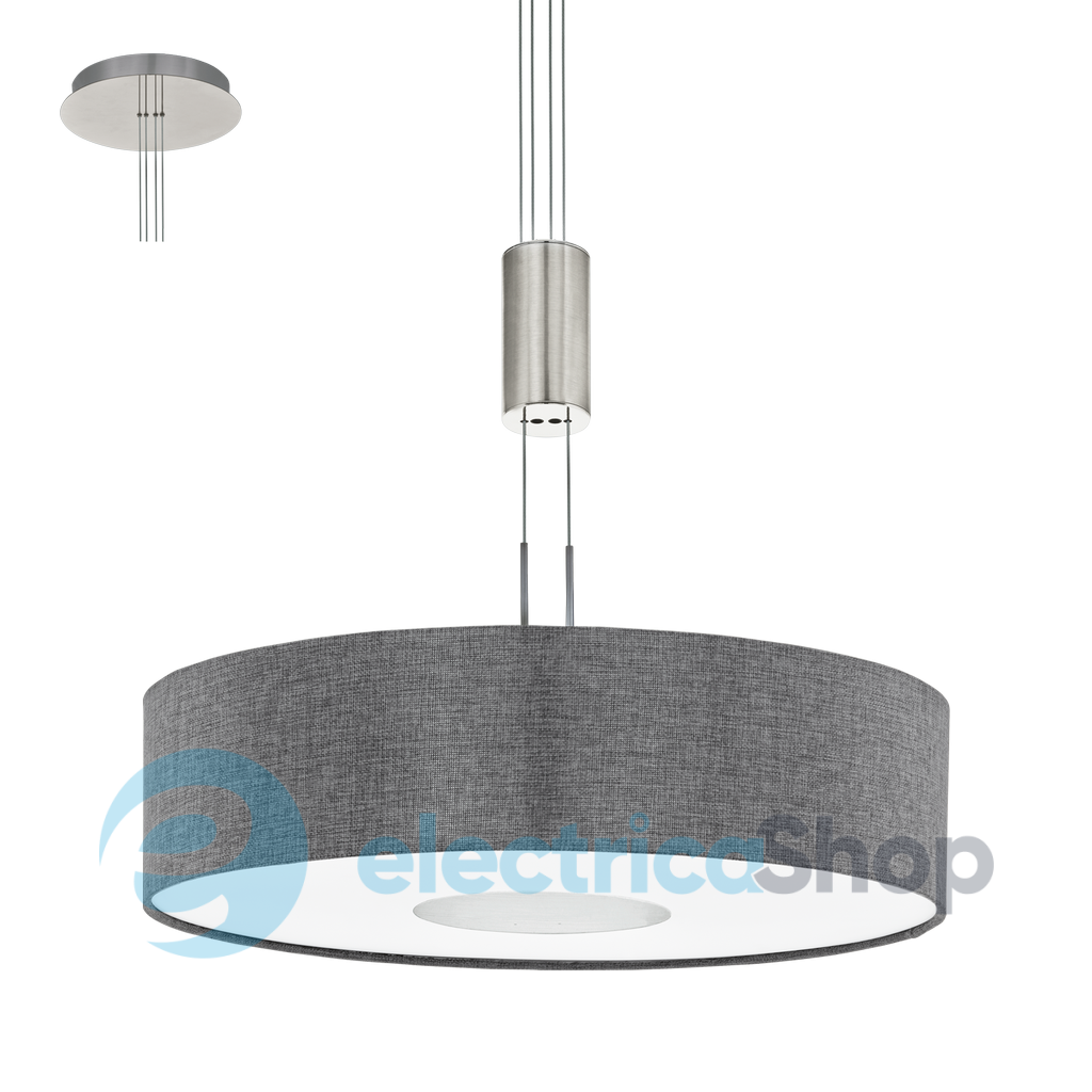 Авангардний підвіс 95348 EGLO з серії – «ROMAO». Основа виготовлена зі сталі кольору нікель матовий, хром, а плафон - з тканини та полотна. Освітлювальний прилад можна регулювати по висоті. Підвіс ROMAO 2 – це інтер'єрна лампа з колекції підвісних світильників Eglo.