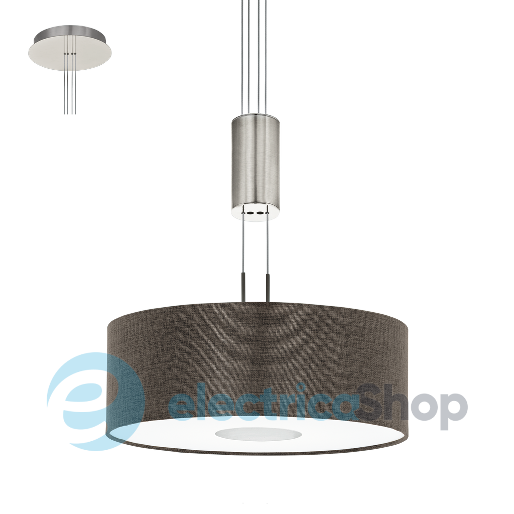 Авангардний підвіс 95338 EGLO з серії – «ROMAO 2». Основа виготовлена зі сталі кольору нікель матовий, хром, а плафон - з тканини та полотна натурального кольору. Освітлювальний прилад можна регулювати по висоті. Підвіс ROMAO 2 – це інтер'єрна лампа з колекції підвісних світильників Eglo.