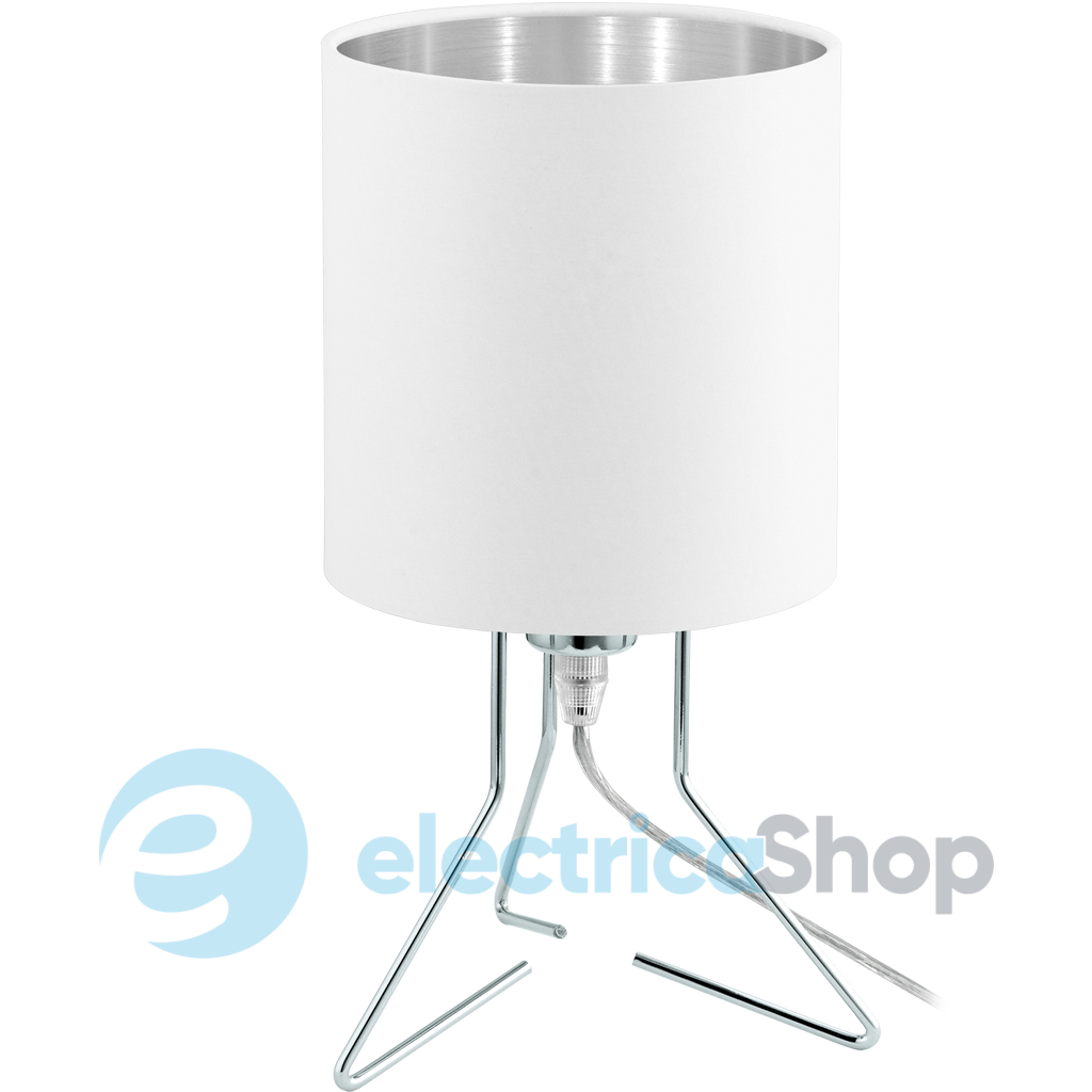 Стильна настільна лампа Eglo 95759 з колекції Eglo – «NAMBIA 1» с основам з хромованої сталі і плафоном з тканини білого зовні та сріблястого всередині. Всі настільні лампи Eglo виготовлені з якісних матеріалів з дотриманням всіх норм безпеки.