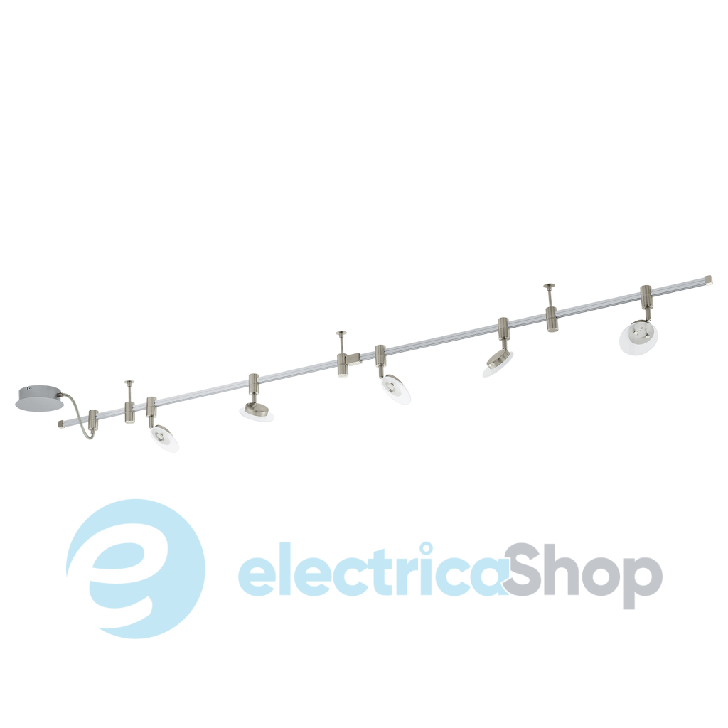 Трековий світильник Eglo 94419 з серії «VILANOVA 1» призначений для стильних інтер'єрів. Основа трекового світильника виготовлений з алюмінію та сталі, а плафони з сатинового скла. 5 світлодіодних джерел світла, потужністю 4,5 Вати кожен, здатні освітити приміщення до 20 м². Температура світла світлодіодних ламп трекового світильника - 3000К, світловий потік - 1900 lm. Середня тривалість роботи світильника, заявлена постачальником, складає 25000 годин. Гарантія на трековий світильник - 2 роки.