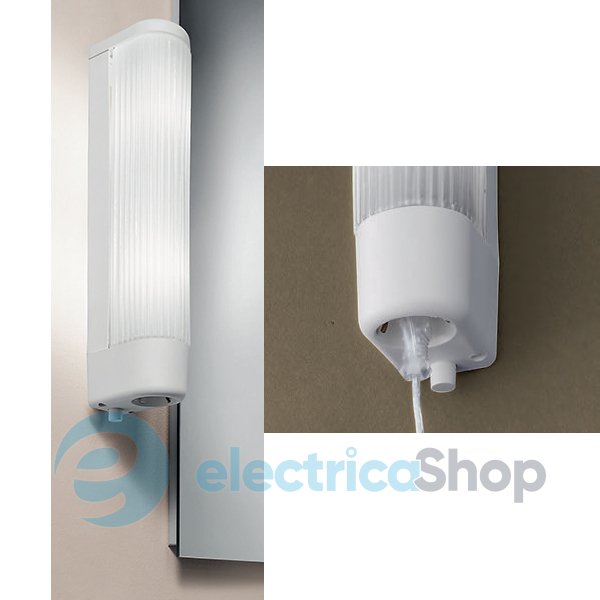 Настінний світильник Eglo 94987 BARI 1 виготовлений з пластику и рифленого скла. Може використовуватися для підсвічування дзеркал. Укомплектований розеткою.