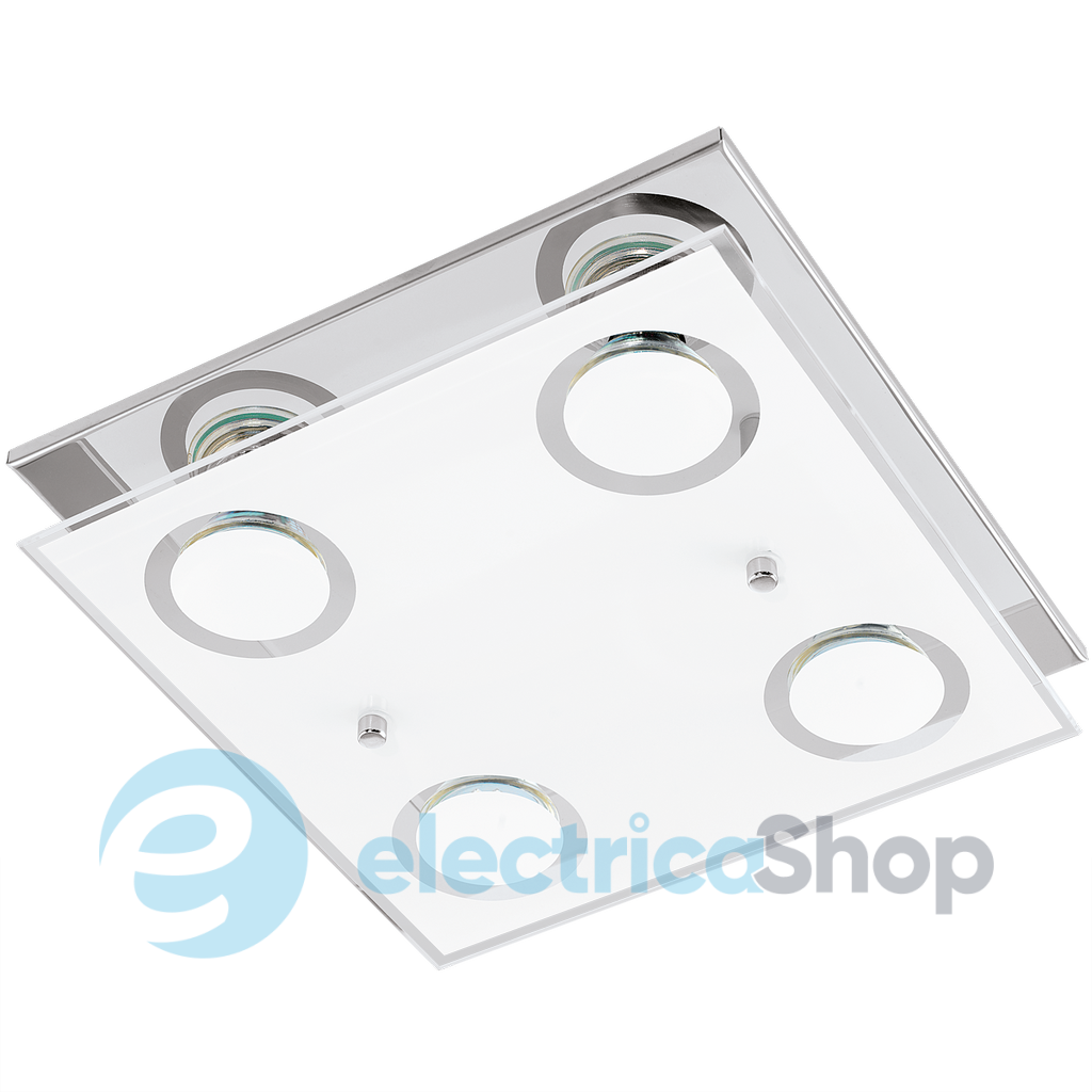 Світильник Eglo 94374 VARALLO з базової колекції Егло. Основа виготовлена з нержавіючої хромованої сталі. Білий плафон світильника виготовлений зі скла. Світильник дає м'який, приємний для людського ока, теплий спектр світіння 3000K. Світловий потік - 4 x 240 lm. Середня тривалість роботи - 15 000 годин.