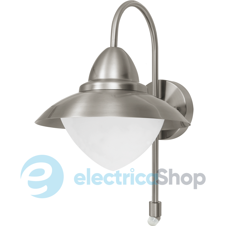 Вуличне бра 87105 австрійського бренду Eglo™ з колекції «SIDNEY». Основа бра виготовлений з нержавіючої сталі. Плафон білий з опалового скла. Світильник має вбудований датчик руху з кутом огляду 120° та дальністю виявлення до 6 метрів . Час затримки відключення світильника можна встановлювати в діапазоні 5 - 480 секунд.