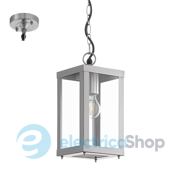 Вуличний підвісний світильник 94786 австрійського бренду Eglo™ з колекції «ALAMONTE». Основа виготовлена з нержавіючої сталі. Плафон прозорий зі скла.