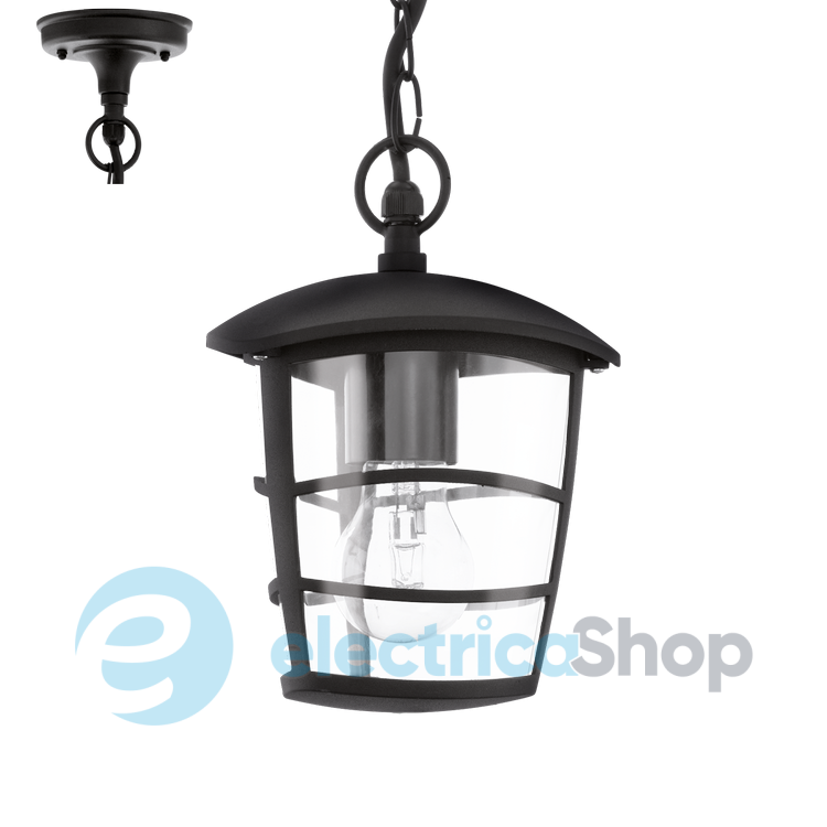 Вуличний підвіс93406 австрійського бренду Eglo™ з колекції «ALORIA». Основа підвісу виготовлена з алюмінію чорного кольору. Плафон прозорий з пластику.