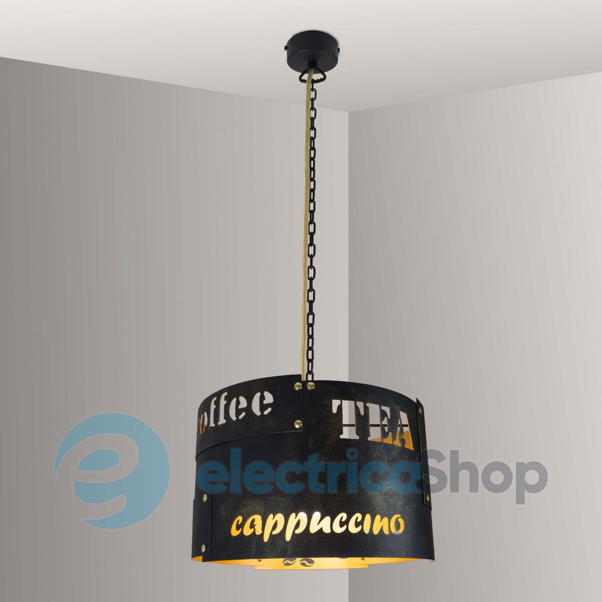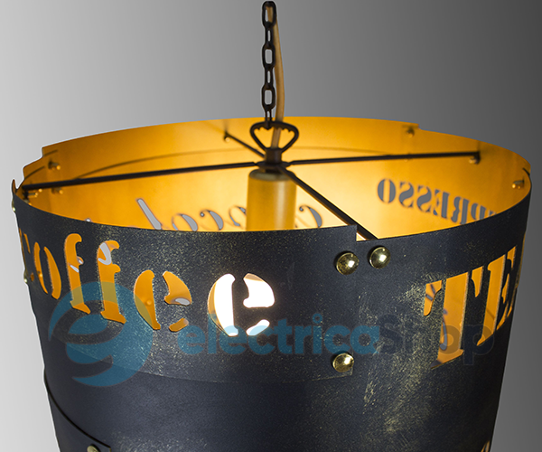 Оригінальний підвісний світильник Imperium Light 96140.05.48 Coffee break гарно виглядатиме в кухні, їдальні, вітальні та інших приміщеннях, наприклад, оформлених в стилі лофт. Світильник виготовлений з металу та пофарбований в чорний и золотистий кольору.