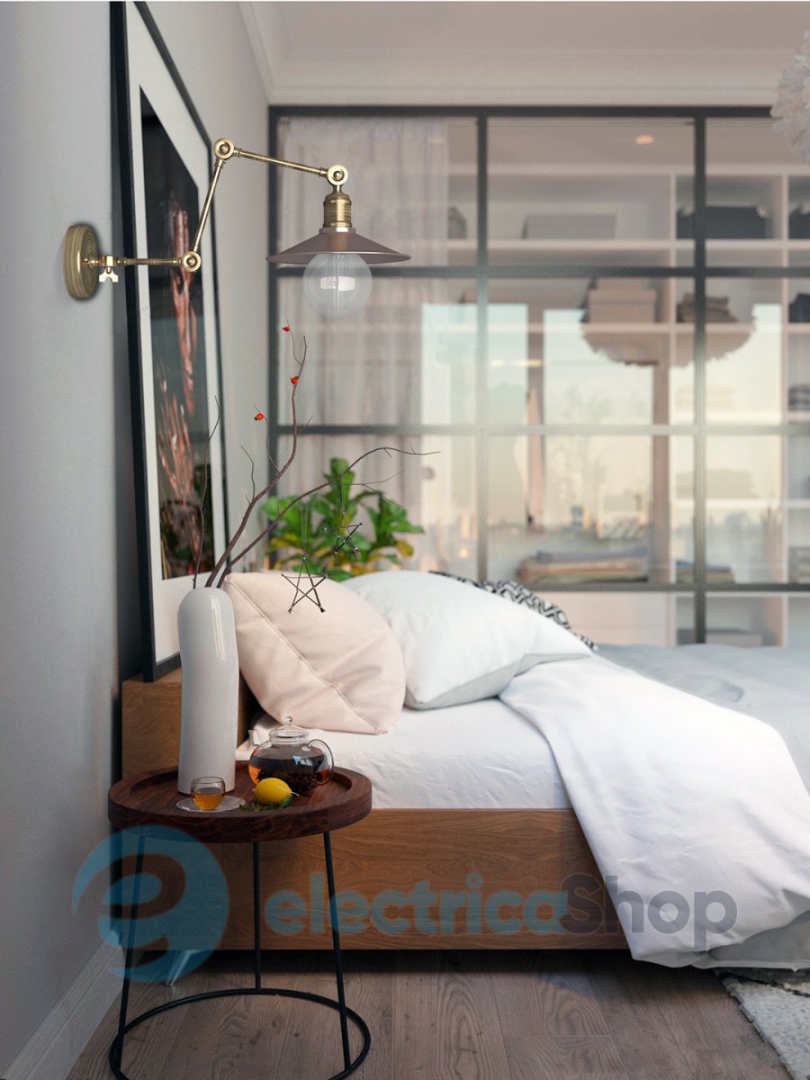 Бра PikArt 802 буде гарно виглядати в приміщеннях, оформлених в стилі лофт, вінтаж. Арматура - латунь, патина, лак, плафон - мідь, прозора порошковая окраска. Світильник оснащений 4-ма поворотними механізмами. Оригінальні настінні світильники PikArt 802 стануть відмінним дизайнерським акцентом в сучасному інтер'єрі.