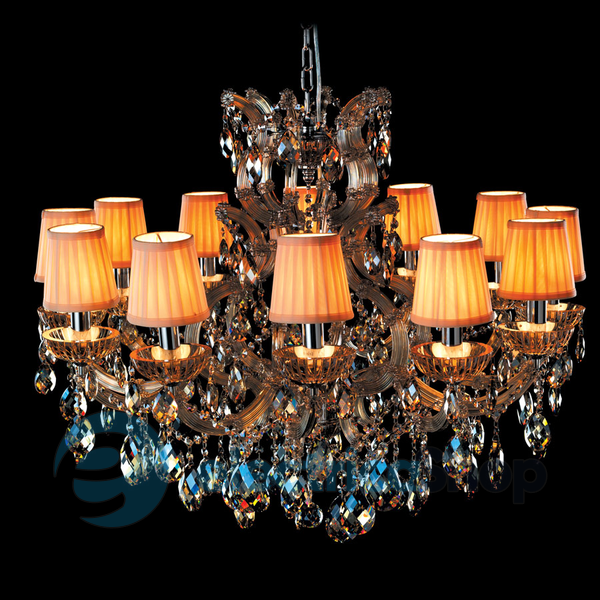 Шикарна люстра Illuminati MD09054-12B Ambra Fiore стане справжньою окрасою приміщень, оформлених в класичному стилі. Такий освітлювальний прилад буде добре виглядати в спальні, вітальні, їдальні, великих залах, а також у кафе і ресторанах. Виготовлена з металу, тканини, скла і кришталю. Висоту люстри можна регулювати.