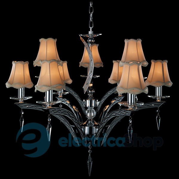 Шикарна люстра Illuminati MD101050-9B Unicorno стане справжньою окрасою класичного інтер'єру. Корпус люстри виготовлений з металу, плафони - з тканини, підвіски та блюдця під плафонами - зі скла.