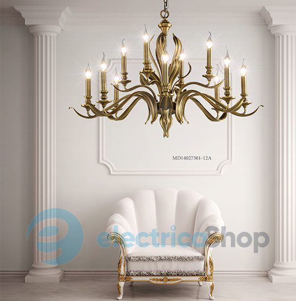 Шикарна люстра Illuminati MD14027301-12A Geneva стане справжньою окрасою приміщення, оформленого в класичному стилі. Вирізняється плавними лініями і витонченими формами, характерними для всієї серії Geneva Illuminati. Люстра повністю виготовлена з латуні.