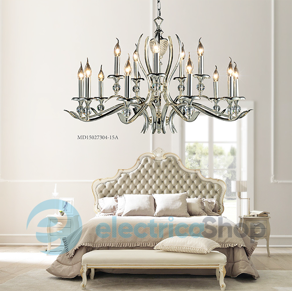 Шикарна люстра Illuminati MD15027304-15A Sienna буде гарно виглядати у вітальні, спальні, їдальні та інших приміщеннях, оформлених в класичному стилі. Виготовлена з металу та кришталю. Така люстра стане справжньою окрасою найвишуканішого інтер'єру.