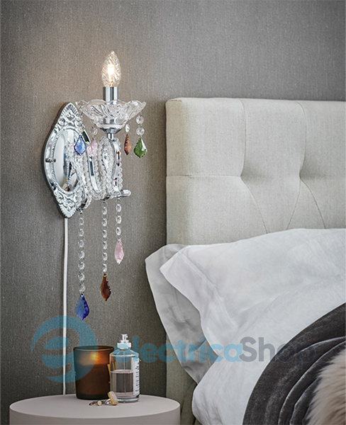Бра MARKSLOJD 107072 Caramel буде здорово виглядати в сучасних інтер'єрах. Виготовлене з кришталю та хромованого металу. Світильник MARKSLOJD Caramel внесе нотку гламуру в приміщення, оформлене в стилі модерн, а також, завдяки формі і різнобарвним кристалики, освіжить звичне нам кришталеве бра в класичному стилі.