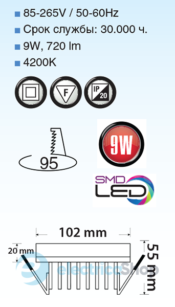 Cвітлодіодний врізний світильник Horoz 016-040-0009 Valeria-9 призначений для освітлення сучасних офісів і житлових приміщень.