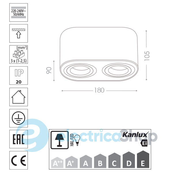 Точковий накладний світильник Kanlux TOLEO DTO250-B буде добре виглядати в сучасних інтер'єрах. Світильник виготовлений з алюмінію. Сертифікація CE (європейське відповідність).