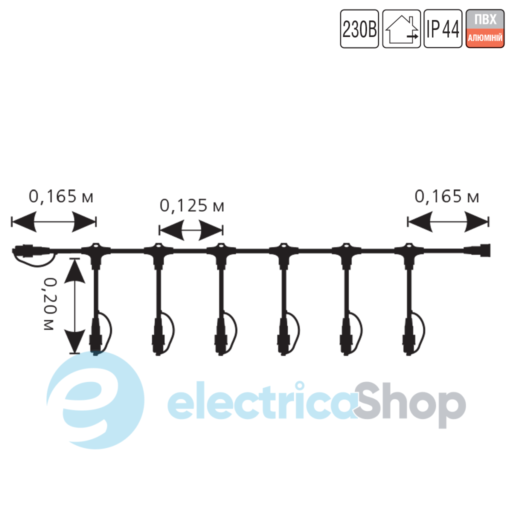 З'єднувальний конектор для вуличних гірлянд Т-подібний. Дозволяє з'єднувати аналогічні гірлянди в єдиний ланцюжок.