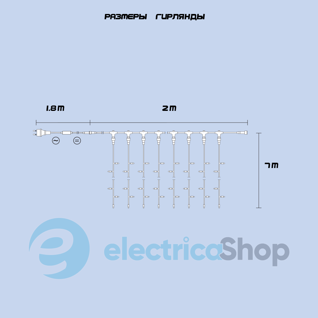Новорічна гірлянда серії «CURTAIN» для вуличного застосування. Розміри гірлянди: 1.8 м + 2м х 7м.