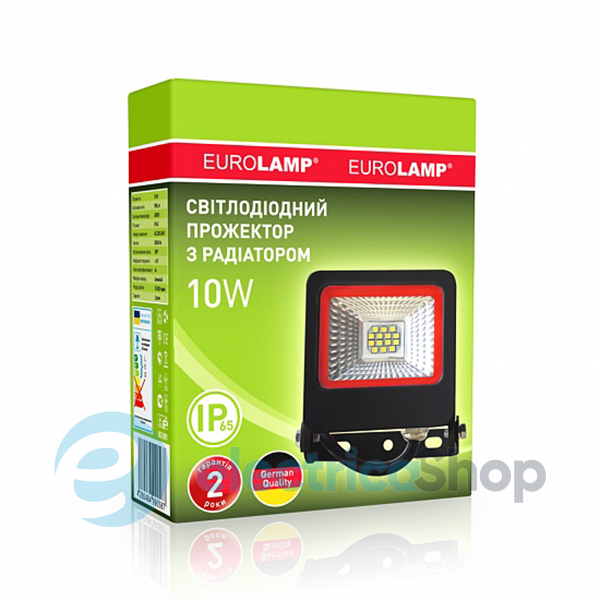 Потужний світлодіодний прожектор Euroelectric LED-FL-10(black)new з радіатором для зовнішнього освітлення з високим ступенем захисту від вологи і пилу.