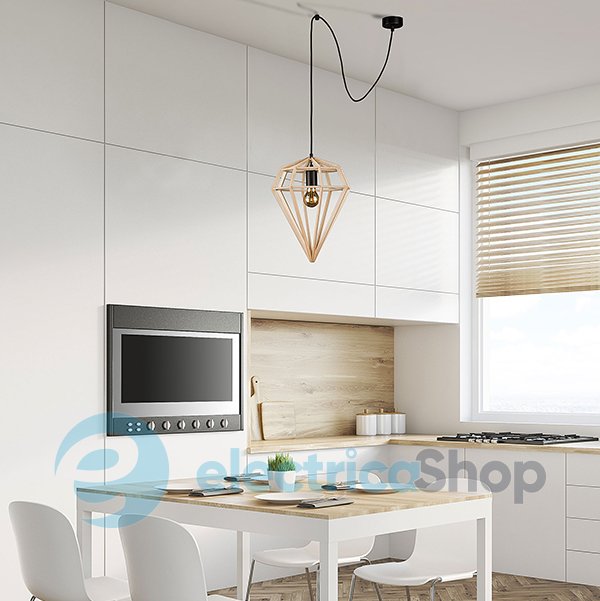 Підвісний світильник Nowodvorski 9372 WOOD DIAMOND гарно виглядатиме в сучасних інтер'єрах. Виготовлений з дерева та металу.