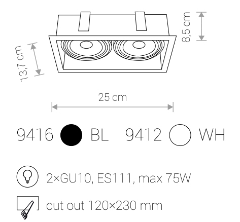 Вбудований cвітильник Nowodvorski 9412 MOD призначений для освітлення сучасних приміщень. Лампи - GU10 ES111.