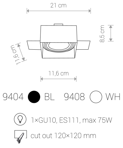 Вбудований cвітильник Nowodvorski 9408 MOD PLUS призначений для освітлення сучасних приміщень. Лампа - GU10 ES111.